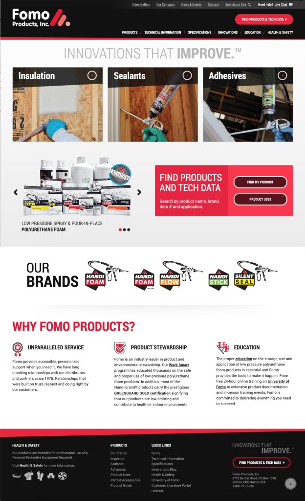 As Project Manager and Co-Creator, I led a team of two company employees and an outside firm to redesign the website for Fomo Products, a leader in high-quality polyurethane foam solutions for industries like construction, automotive, and packaging. The goal was to create a clean, professional site that effectively showcases their energy-efficient insulation and foam products.